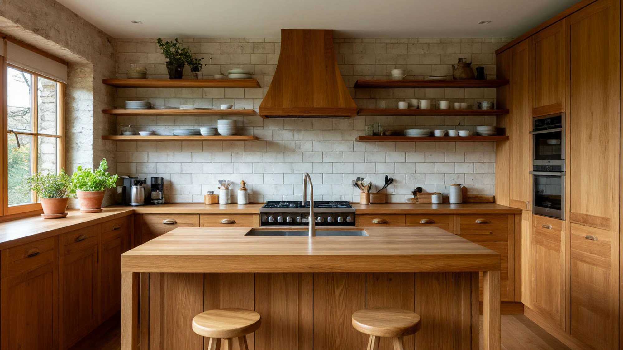 Важным преимуществом является и универсальность стиля. Кухня в деревянном стиле легко интегрируется в различные интерьерные концепции. Она может стать центральным акцентом современного минимализма, дополнить скандинавский интерьер или органично вписаться в классический загородный дом. Светлые оттенки дерева создают ощущение пространства, а продуманная организация позволяет поддерживать порядок и комфорт во всех зонах.