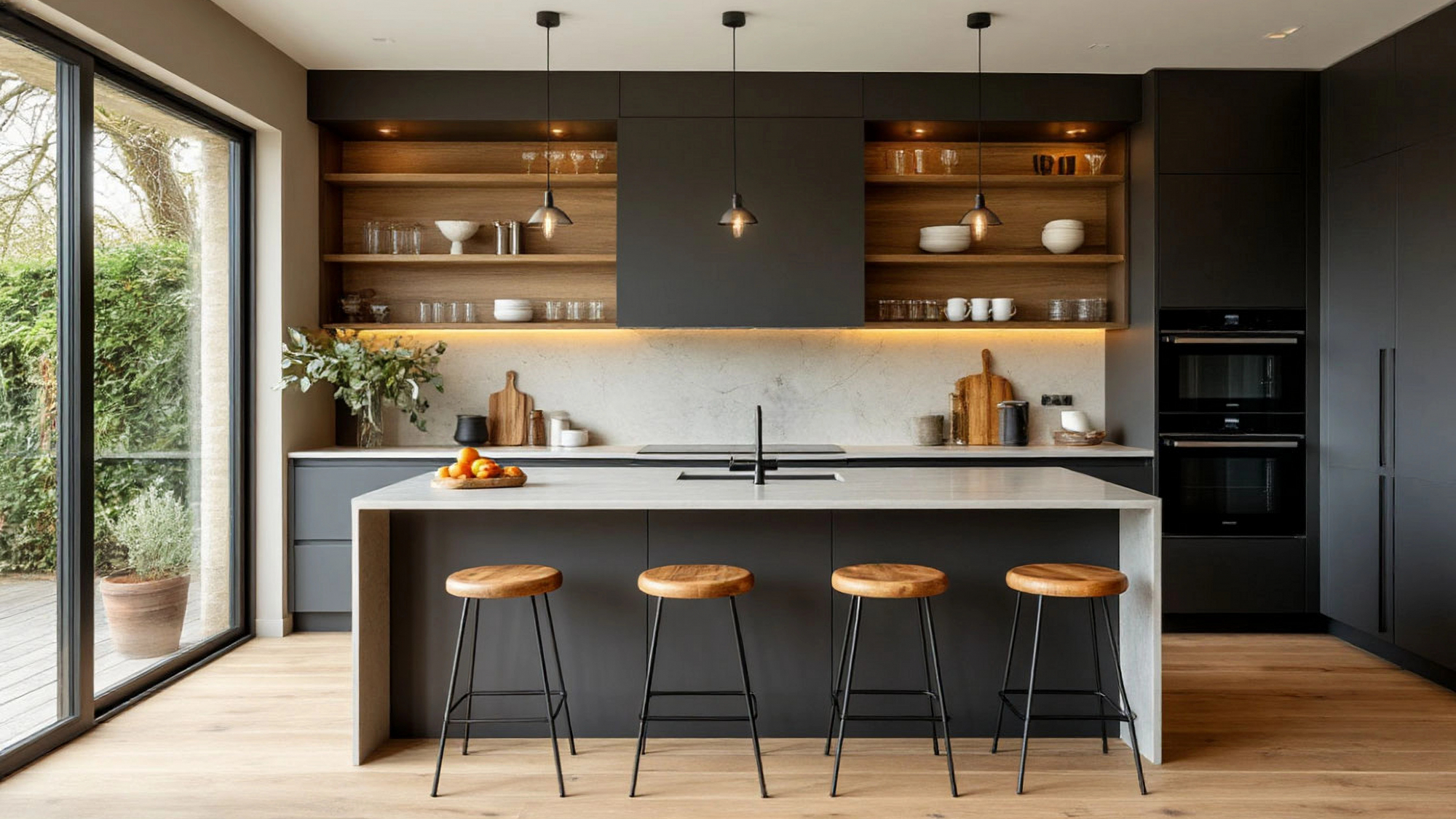 Особое внимание заслуживает сочетание кухни с барной стойкой и современного образа жизни. В больших семьях барная стойка превращается в центр общения: за ней удобно завтракать, перекусывать, обсуждать планы. Для тех, кто живёт один или вдвоём, стойка становится универсальным местом для работы и отдыха. Она объединяет в себе стиль и функциональность, позволяя сэкономить место и при этом придать интерьеру индивидуальность.