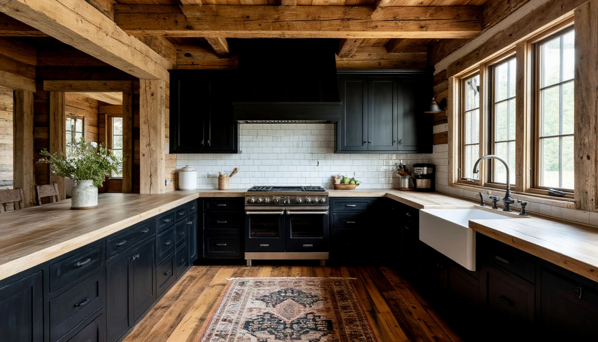 Фасады кухни выполнены из высококачественных материалов, которые обеспечивают долговечность и простоту ухода. Белые поверхности отражают свет, визуально расширяя пространство, а глубокий черный цвет добавляет строгости и солидности, создавая баланс между уютом загородного дома и современным минимализмом. Особое внимание уделено текстуре материалов: фасады мягкие на ощупь, матовые или слегка глянцевые, что добавляет интерьеру тактильную привлекательность и ощущение премиальности.