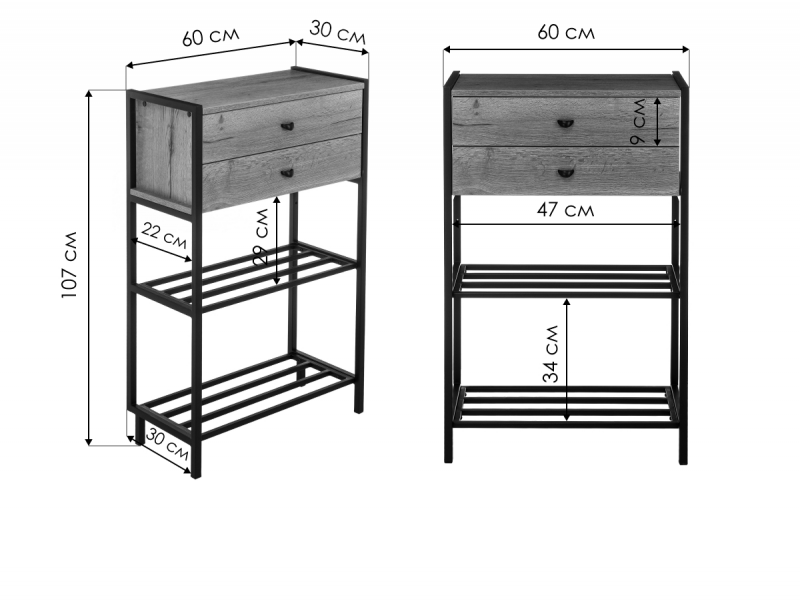 Прихожая Диана дуб велингтон / черный матовый (60x30x101).