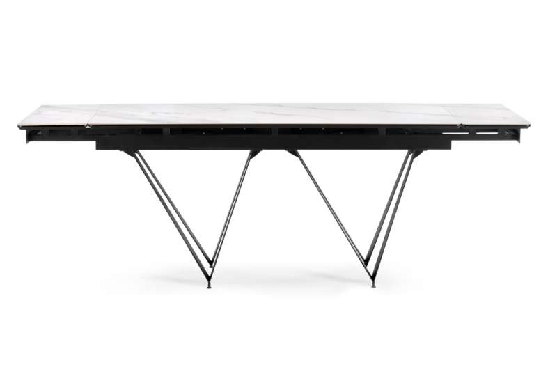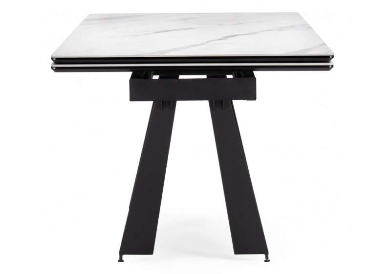 Керамический стол Марвин 160(220)х90х76 белый мрамор / черный (90x76)