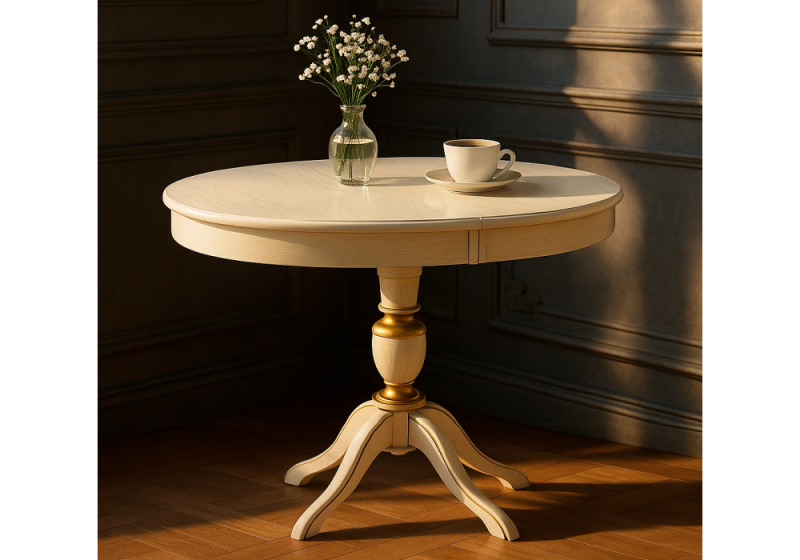 Стол деревянный Arno молочный с золотой патиной (75x76).
