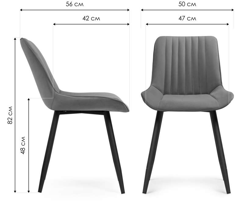 Стул на металлокаркасе Седа велюр синий / черный (50x56x82).